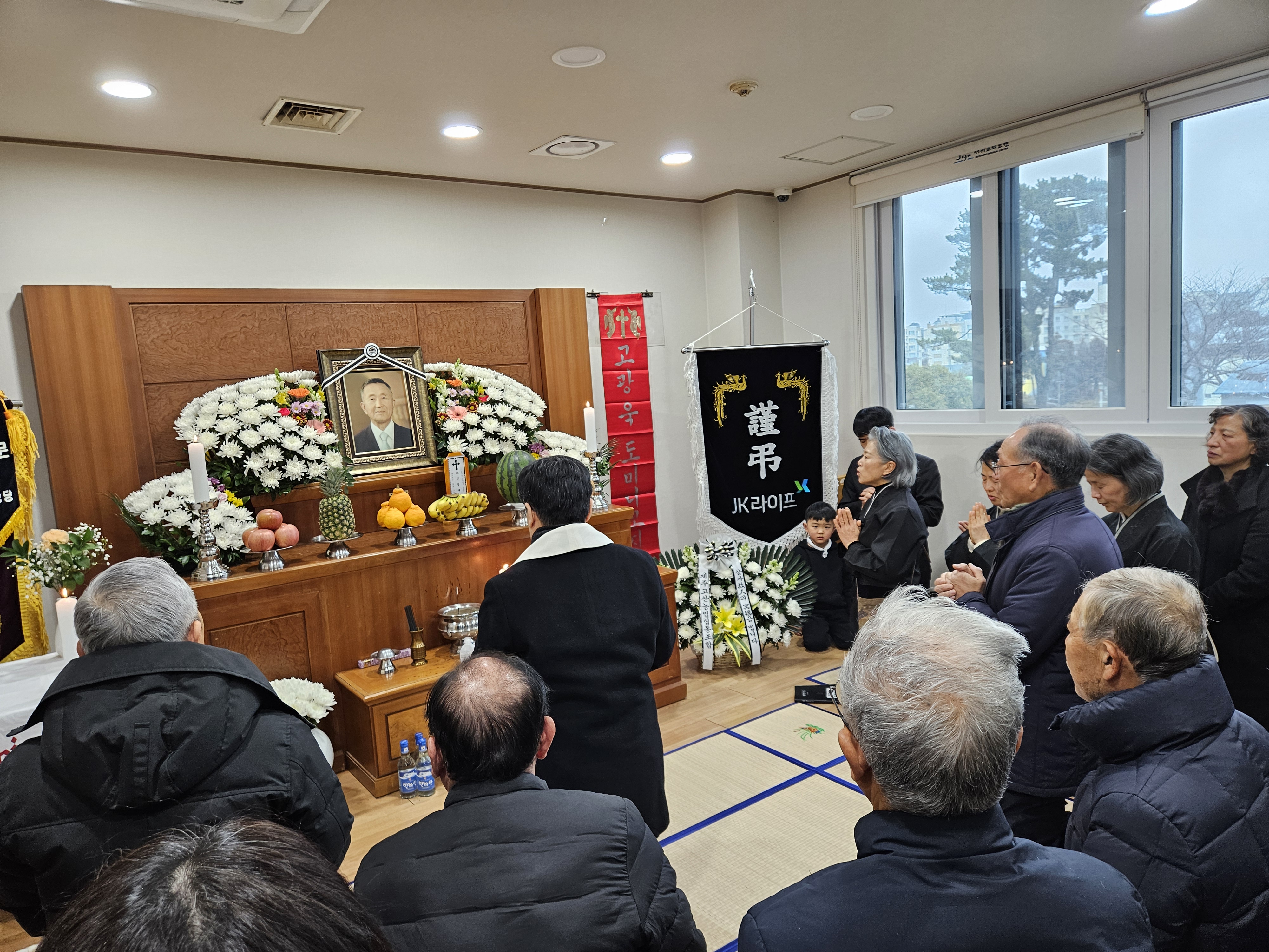 故,고광욱 도미니코님 고별미사 미카엘 1 156 02.11 12:27 “故, 고광욱 도미니코님 고별미사”본당 제1세대 원로님이신 고광욱 도미니코님께서 소천 하셨습니다.임께서는 공소시절 제4대 평신도회장, 본당 승격 이후에는 제2대 사목회장을 역임하셨습니다.김호진 바르틀로메오님, 오춘규 율리아님, 홍두옥 이시돌님, 김치혁 레이몬드님, 오부일 토마스님, 오주영 아우구스티노님 들이 본당 제1세대 원로님들 이십니다.임께서는 77차 꾸루실료교육 수료자 중 제1차로 수료하시기도 하셨습니다. 노년에는 본당이 비대해 지면서 성당 신축의 필요성을 공감하시고 이를 확산 시기는데 대해 일조를 하시기도 하셨습니다.본당 발전을 위하여 크고작은 일을 가리지 않으시고 열정을 다하신 님의 본당 사랑을 우리는 잊지 안을 것입니다. 신축 성당을 보시지 못하고 가심이 참으로 아쉽다 하겠습니다. 우린는 하늘나라에서 신축 성당 진행상황을 지켜 봐 주시 길 기도할 것입니다.고별미사 강론 중 신부님께서 인용하신 천상병의 ‘귀천’ 싯귀가 머릿속을 떠나질 않습니다. “귀천 (歸天)”나 하늘나라로 돌아 가리라새벽 빛 와 닿으면 스러지는 이슬 더불어 손에 손을 잡고 나 하늘나라로 돌아 가리라노을 빛 함께 단 둘이서 기슭에서 놀다가 구름 손짓 하며는 나 하늘로 돌아 가리라아름다운 이 세상 소풍 끝내는 날가서 아름다웠더라고 말하리라, --천상병 시인-- 2026, 2, 11. 안춘식 미카엘 대자.